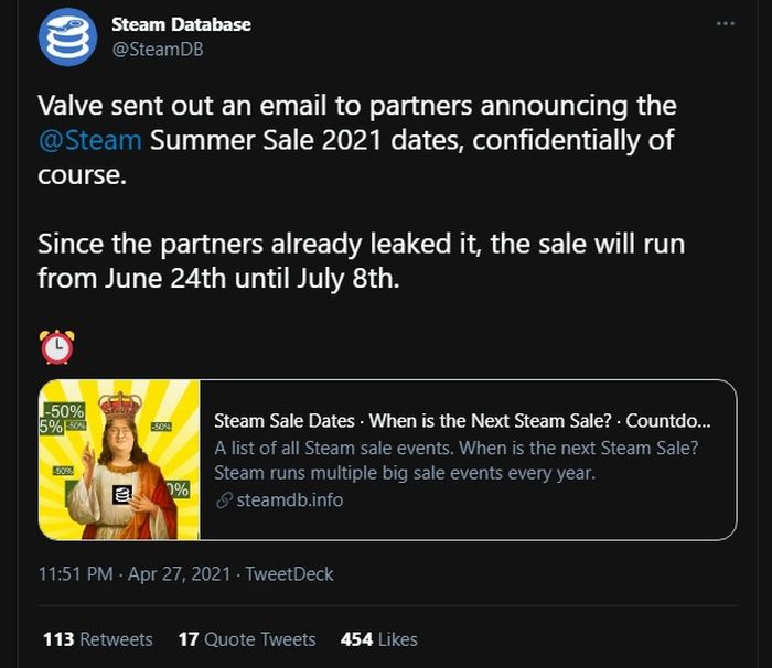 Steam's summer sale has officially begun, offering discounts on games like valheim, it takes two, mass effect legendary edition. This time, however, valve is doing something, well, kind of neat. The steam summer sale 2021 is almost upon us, and will surely provide pc gamers with a whole host of tempting deals on some of the best pc games on the market. Here are the featured deals for day 1. But in an email sent out.